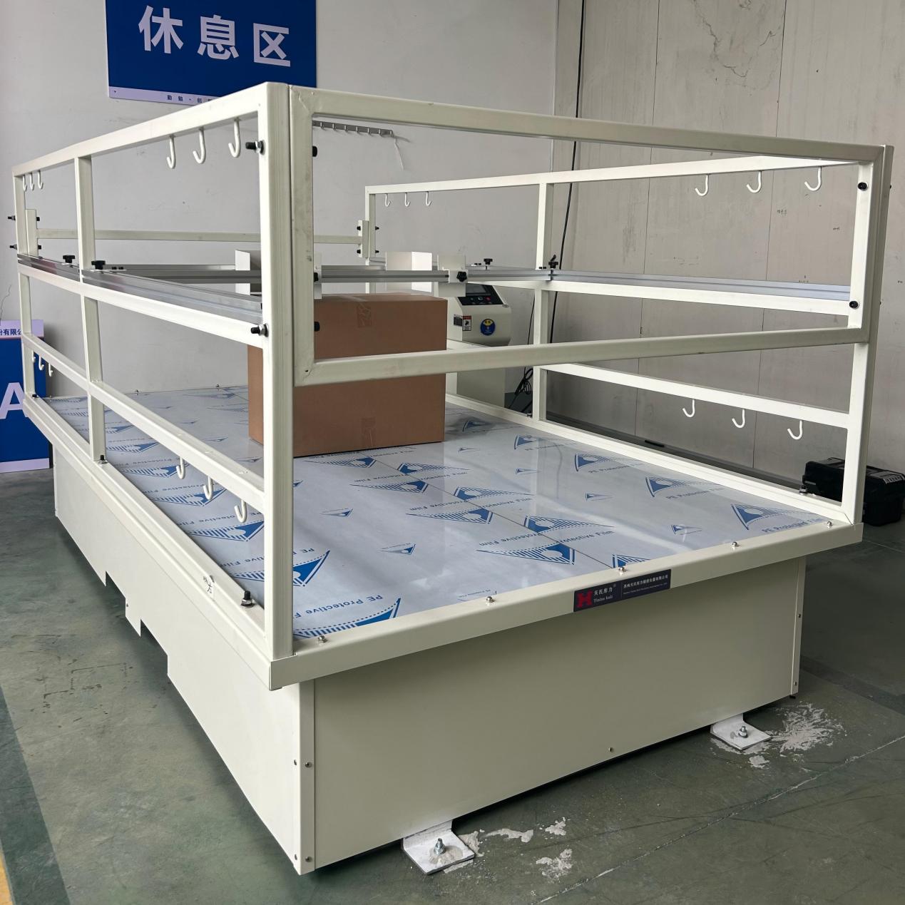 1.樣品準備與固定:將待測產(chǎn)品(包括其完整的銷售包裝)放置在振動臺臺面上。利用設備配備的可拆卸導軌式夾具,將樣品牢固地固定在臺面中央,防止測試過程中滑出。