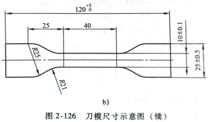 試樣橫截面應(yīng)為矩形,帶表皮或不帶表皮層,無(wú)明顯缺陷。拉伸試樣用下圖所示的兩種刀模之一沖切,試樣厚度為10~15m。